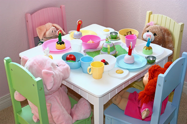 Several of you have asked where I got my play kitchen from. It is called the Kidkraft kitchen and we’ve had it for years. I found the newest model on-line and it is really similar. I love the fun pastel colors. Every penny we spent on this play kitchen was well worth it! (So were the hours we spent assembling this thing. It is quite a project to assemble so if you buy it give yourself plenty of time!)
