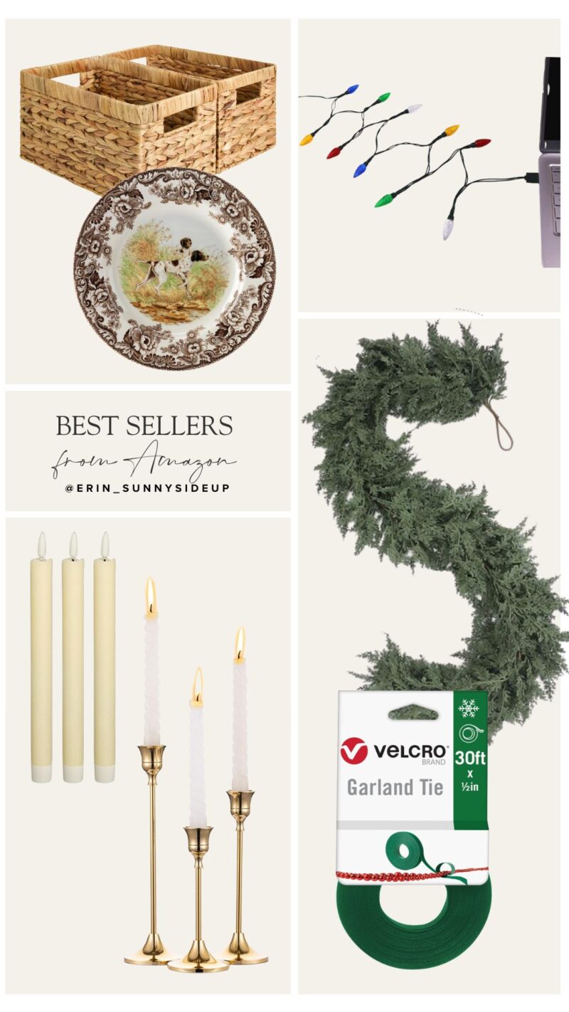 {Candle Stick Holder, Garland Ties, Flameless Tapers, Christmas Light Charger, Baskets, Dog Plate, Faux Garland}